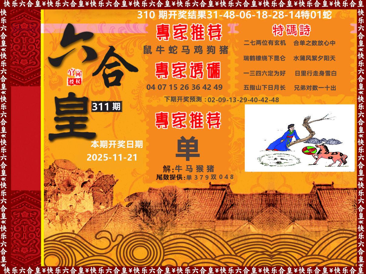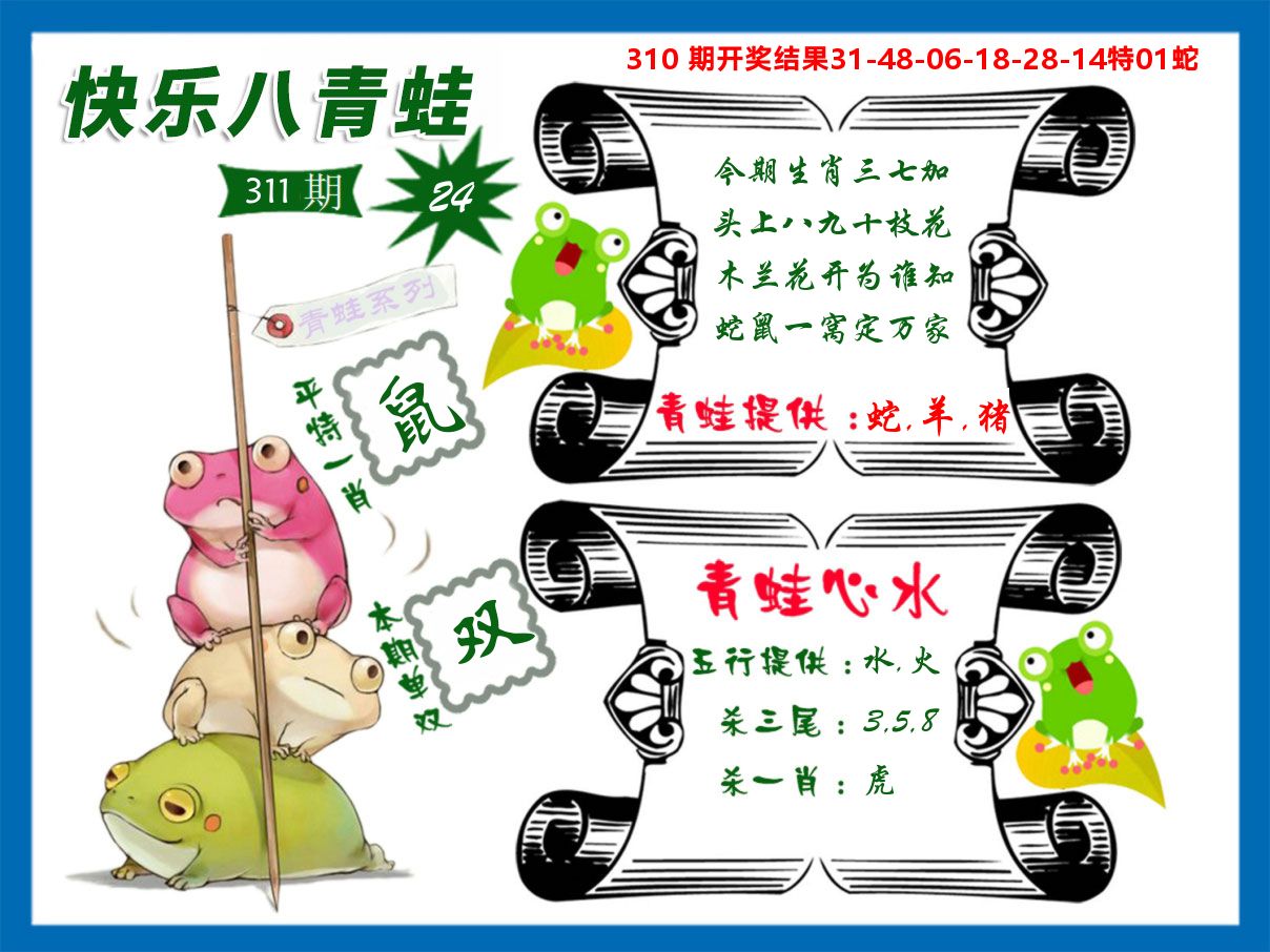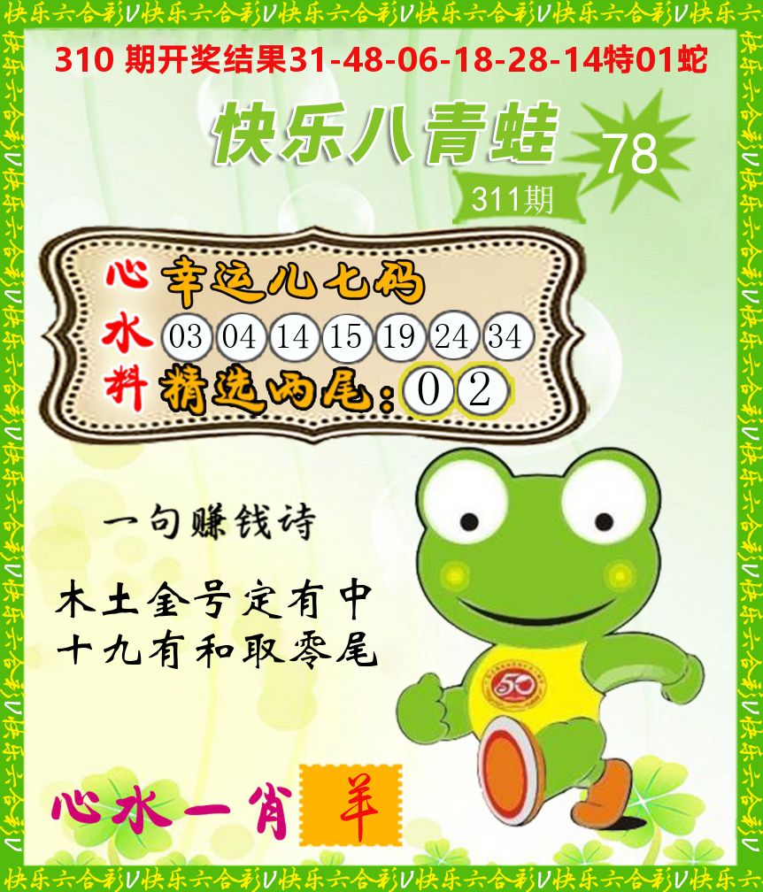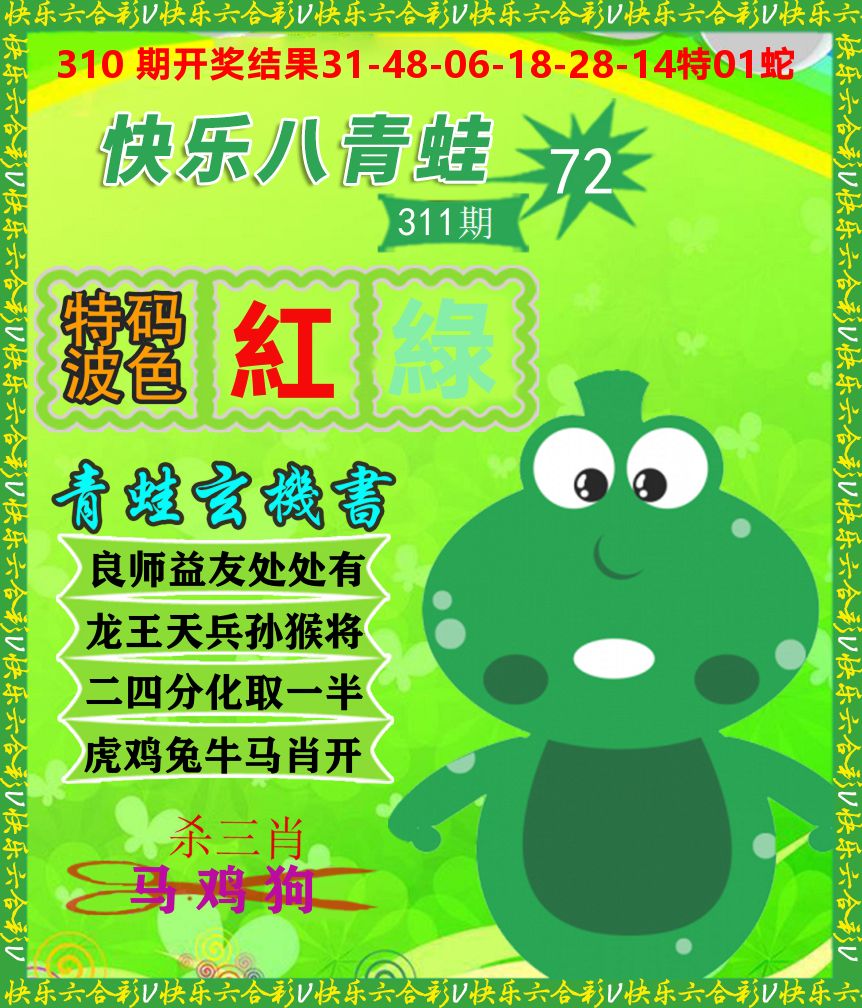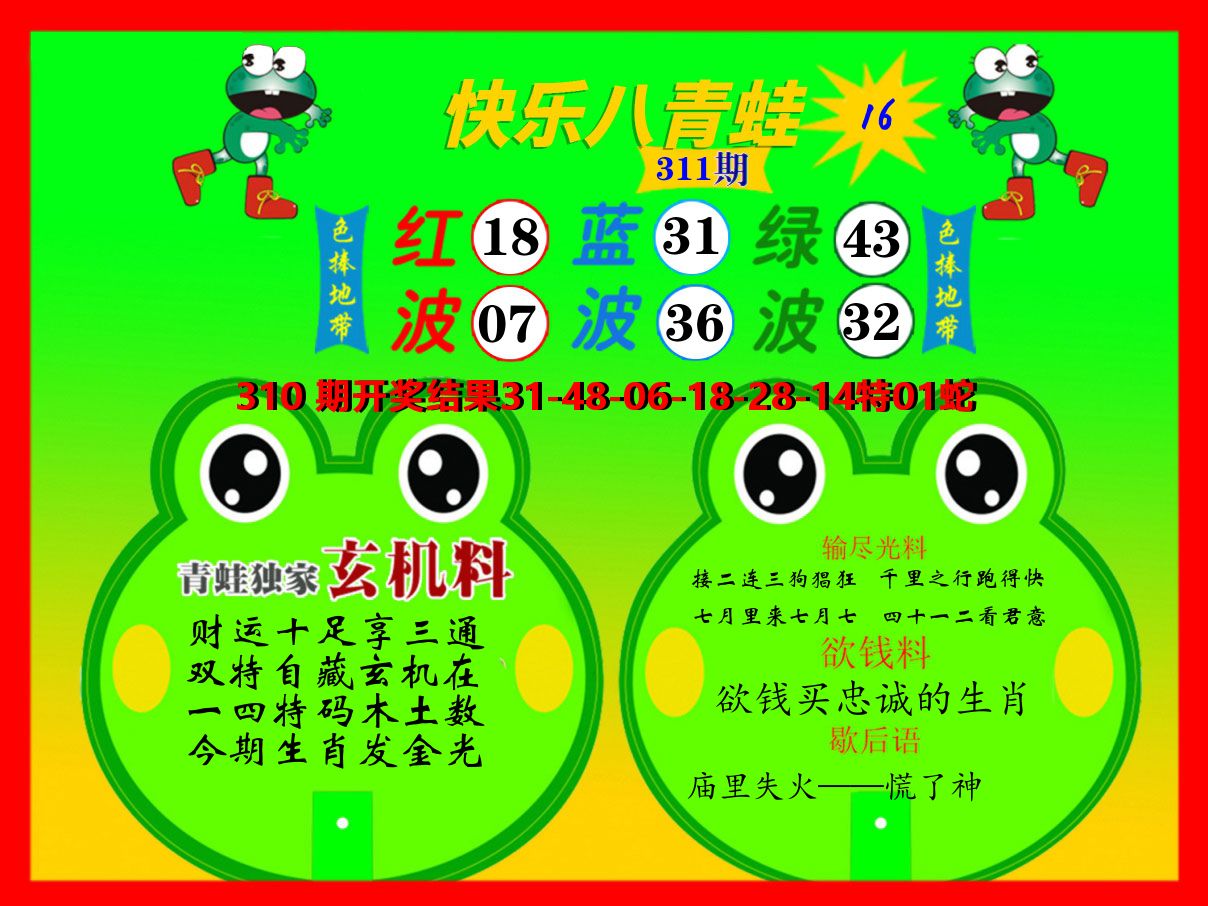解:猪前狗后结亲家,得猪狗,看看地支是哪家,是地肖蛇羊鸡狗鼠虎,开狗32