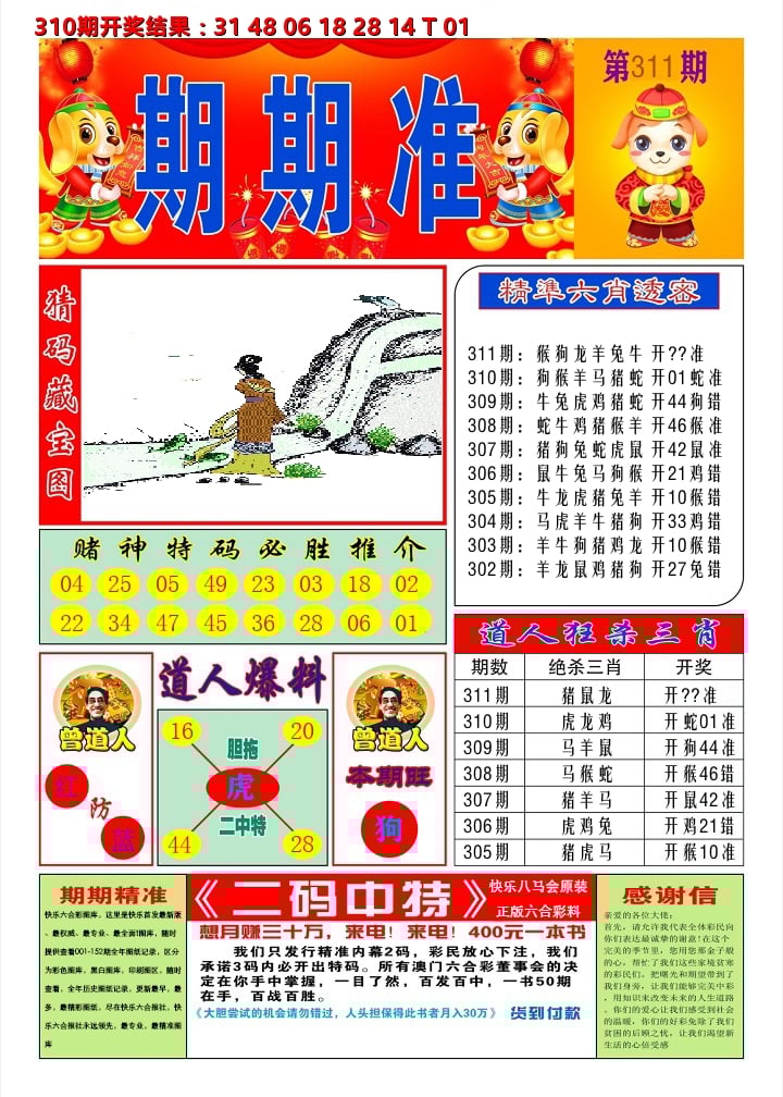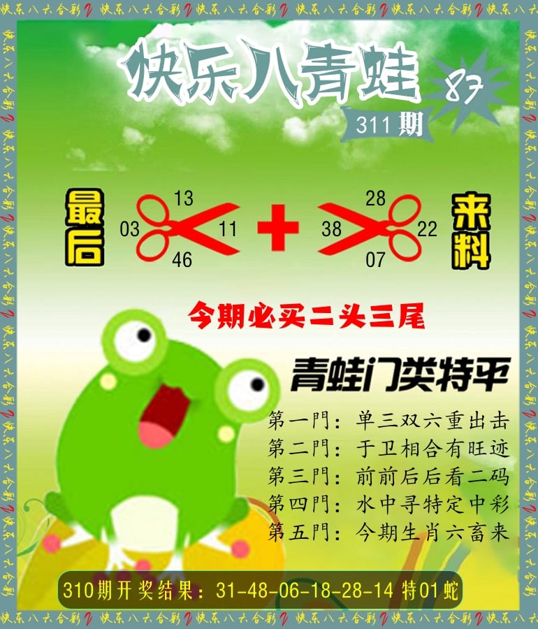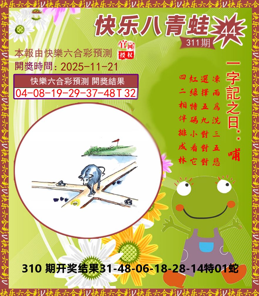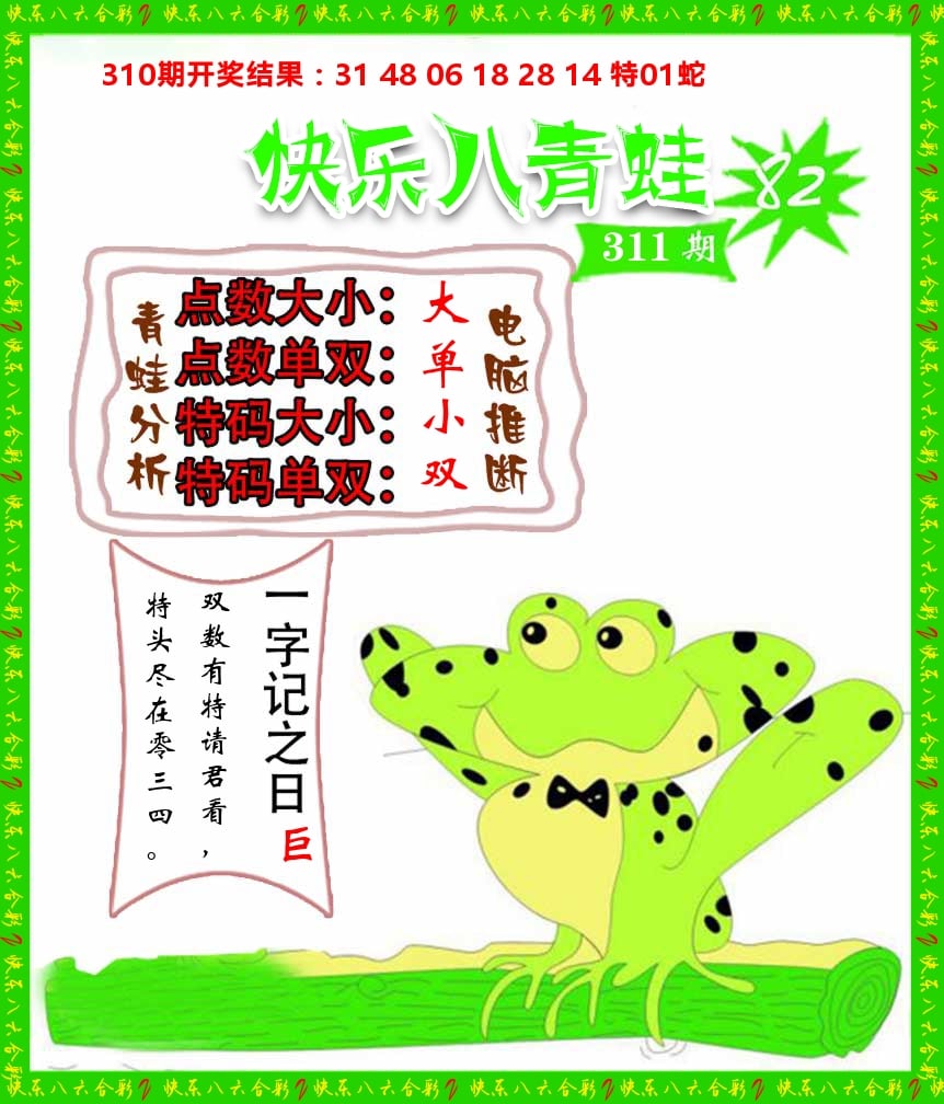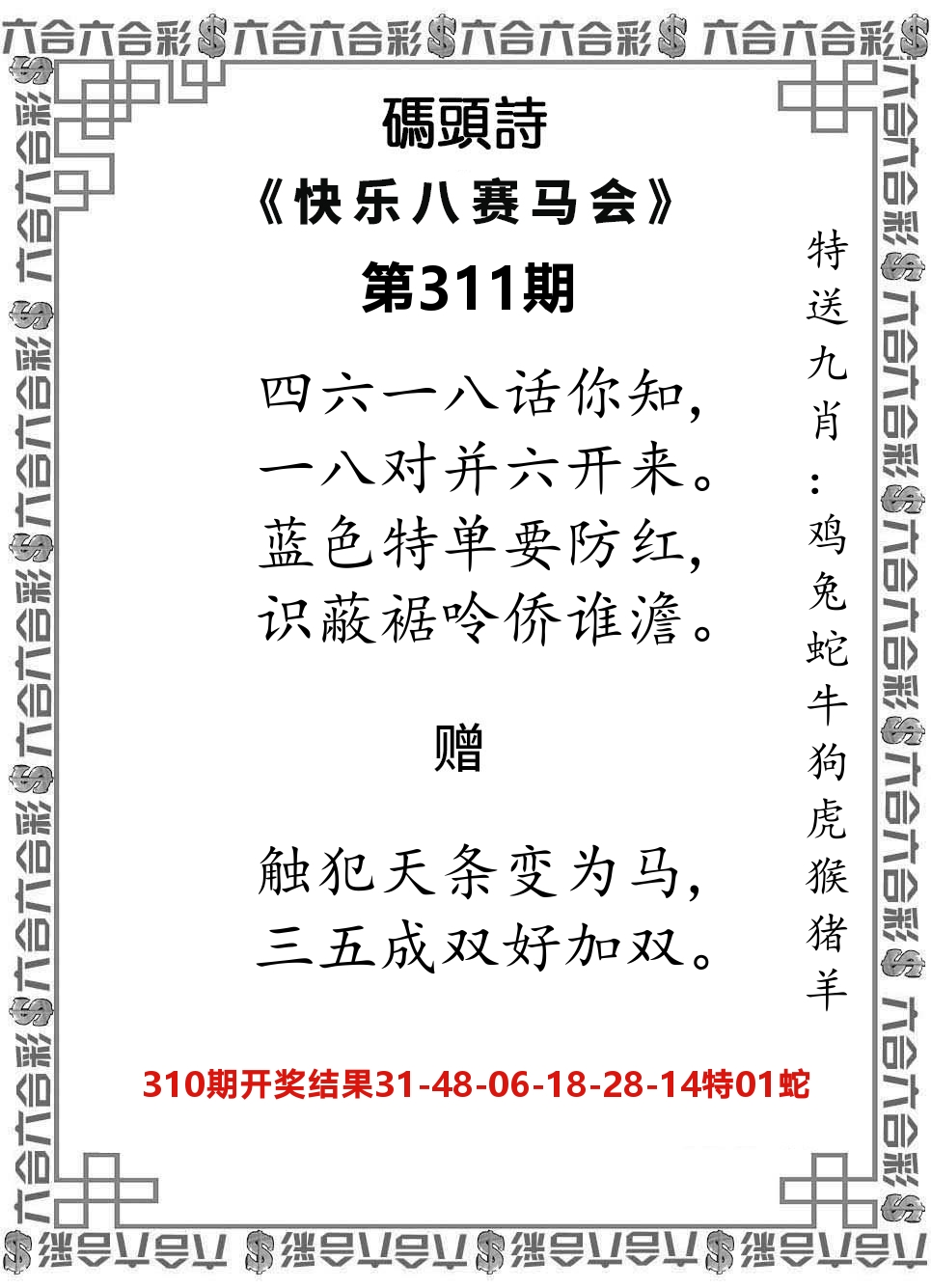 解:猪前狗后结亲家,得猪狗,看看地支是哪家,是地肖蛇羊鸡狗鼠虎,开狗32