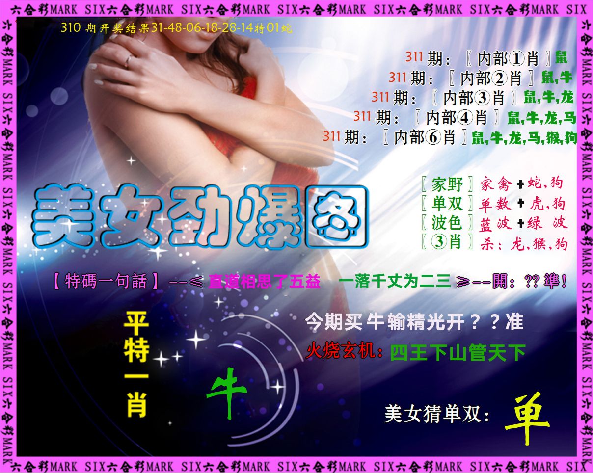 解:明肖马。佳人解羊蛇鸡兔。绿解绿肖牛龙羊狗。天偏看解出的天肖马兔牛龙。玄机诗表达的是帝王微服私访觅得佳人,虽然觅得佳人但还是心系天下。综合得马牛龙兔羊蛇,开兔15