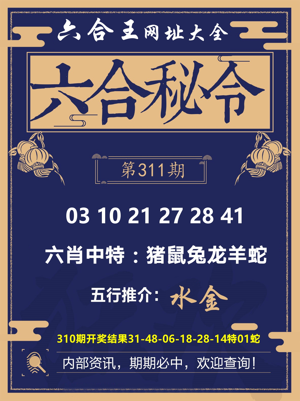 解:金屋藏娇定富贵,金屋是猴鸡。藏娇,是女肖兔、蛇、羊、鸡、猪,开猪31