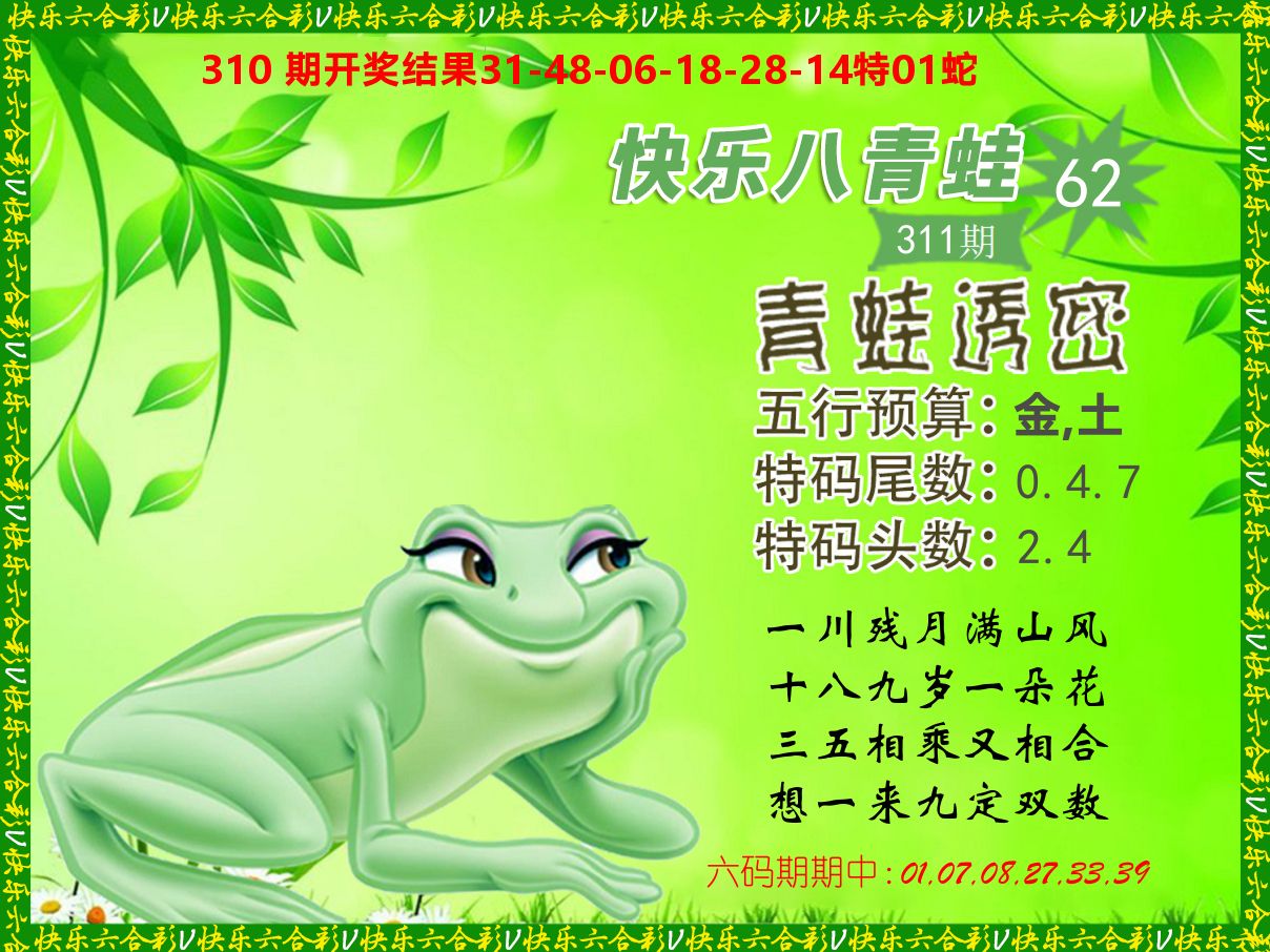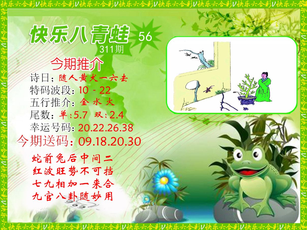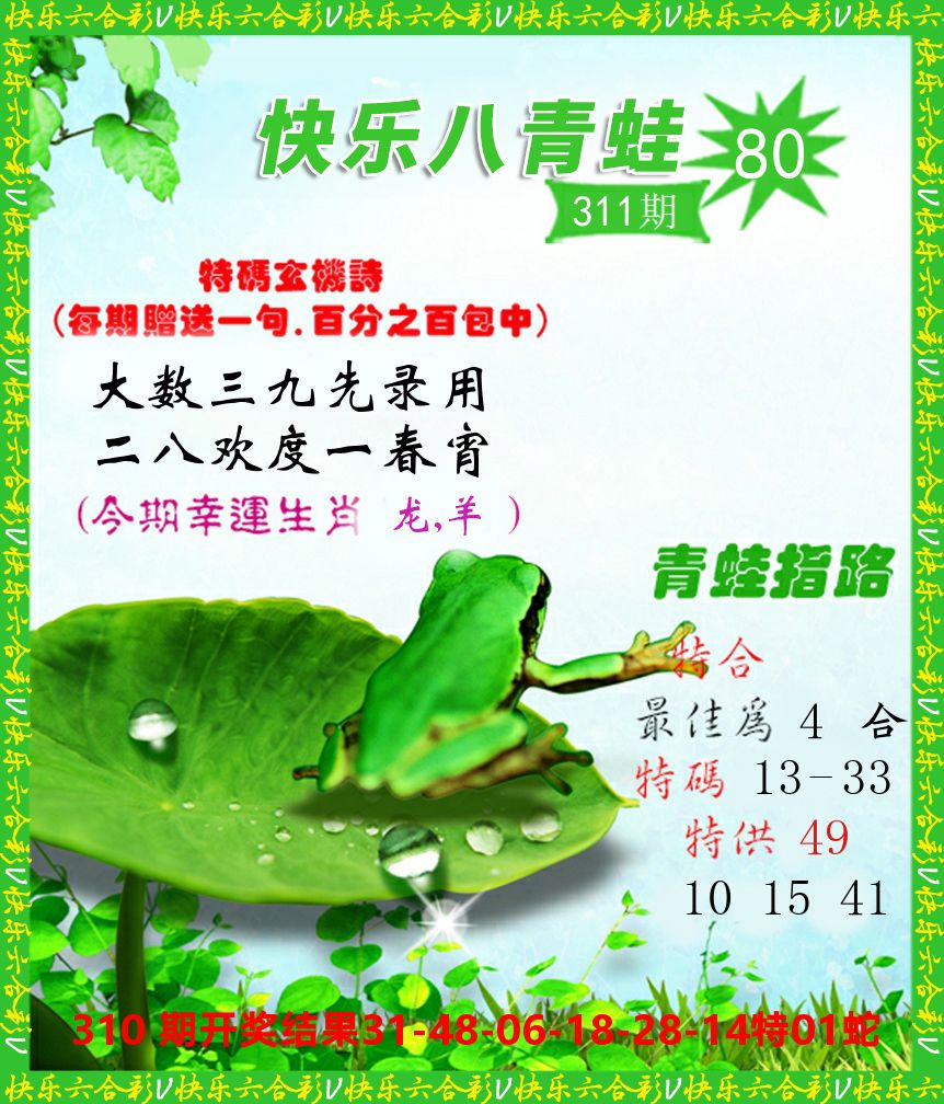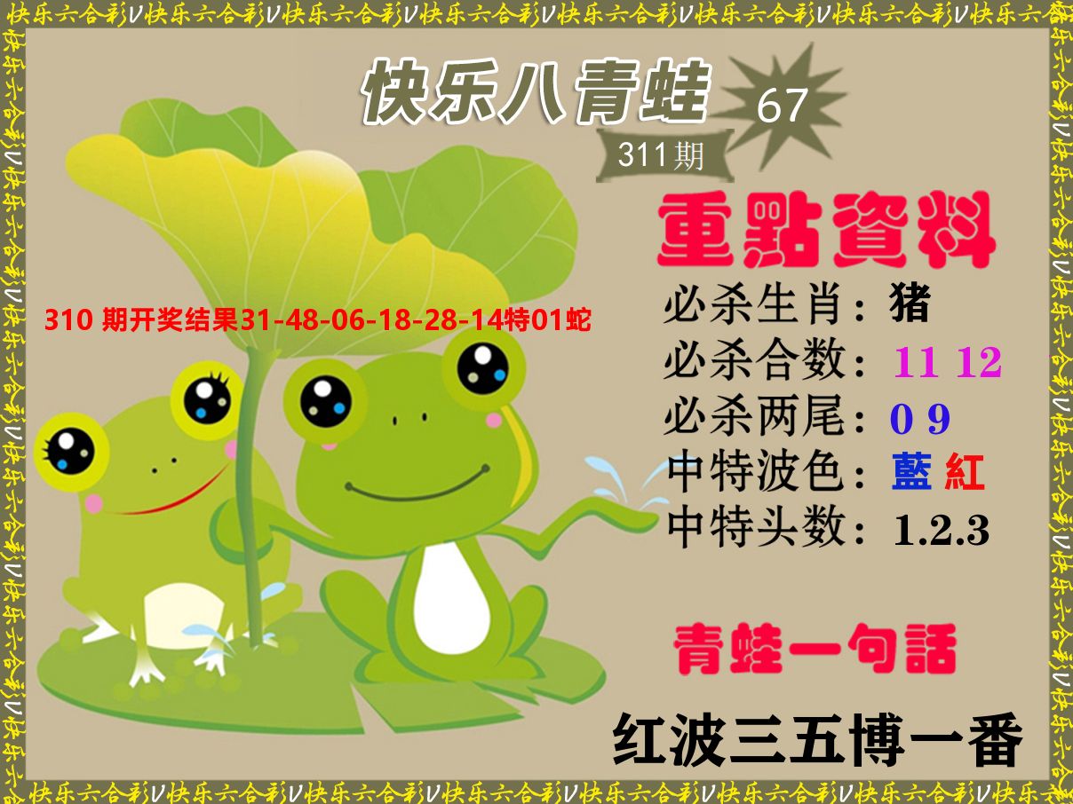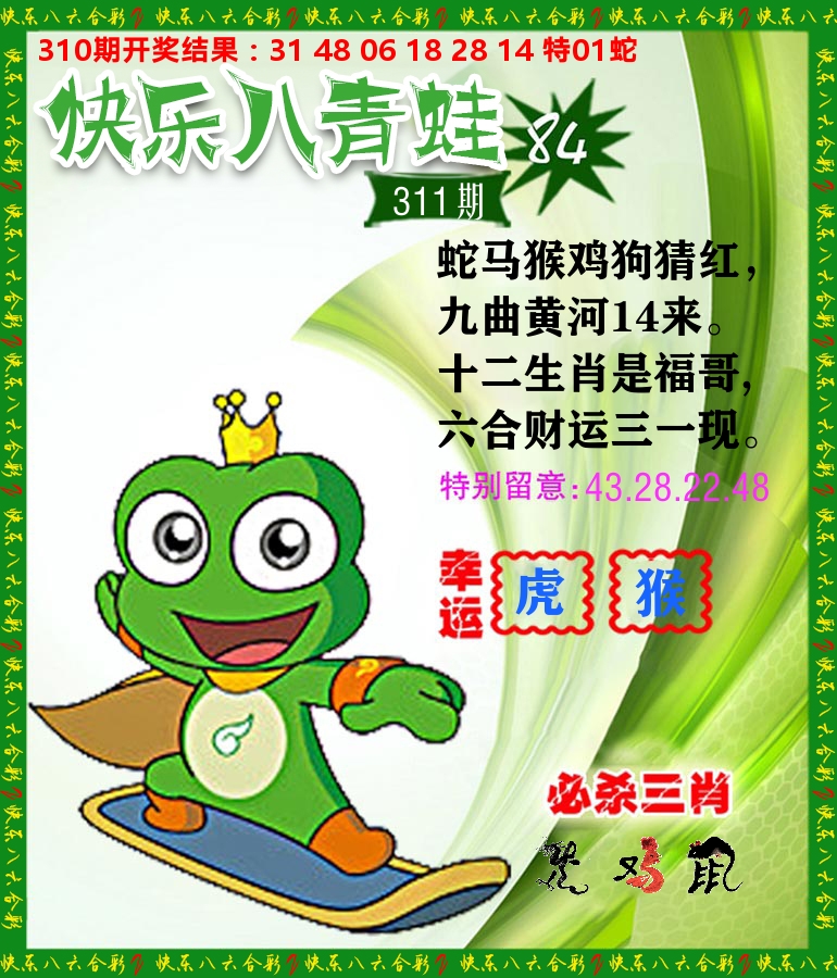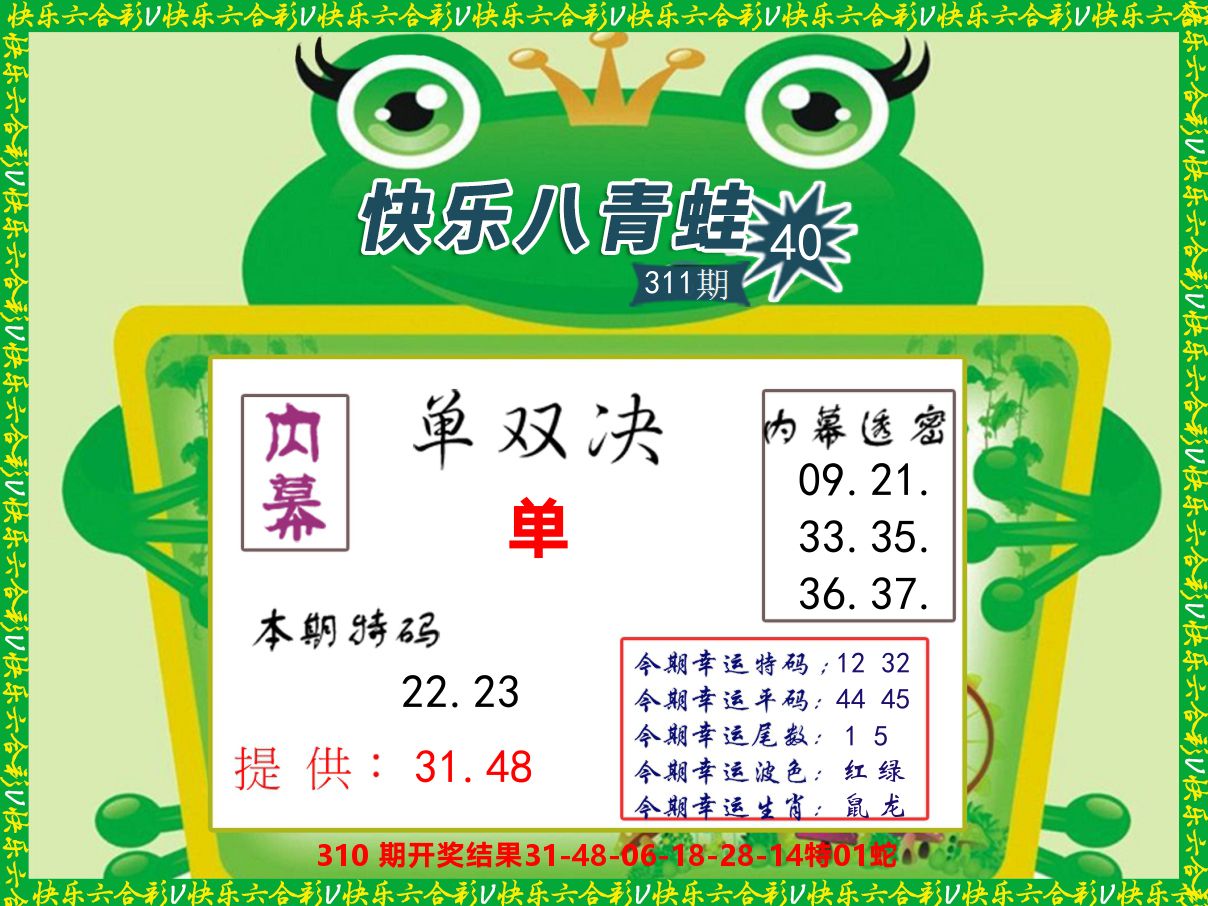 解:猪前狗后结亲家,得猪狗,看看地支是哪家,是地肖蛇羊鸡狗鼠虎,开鸡45