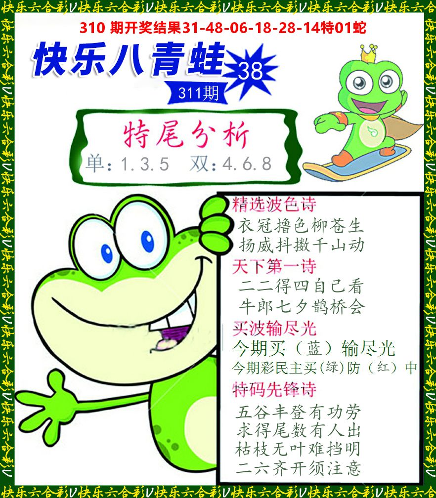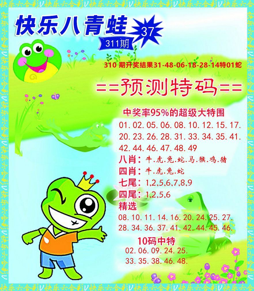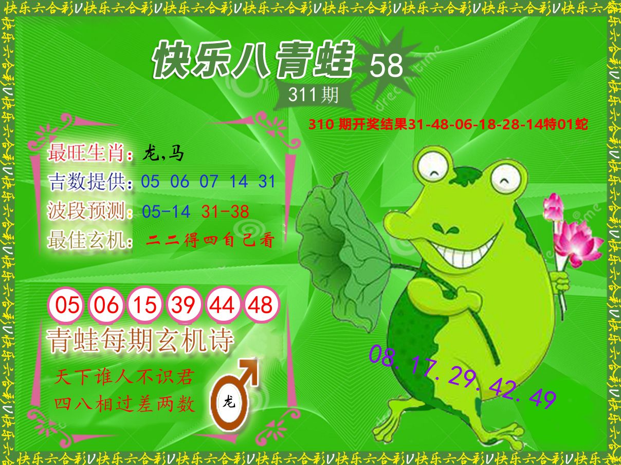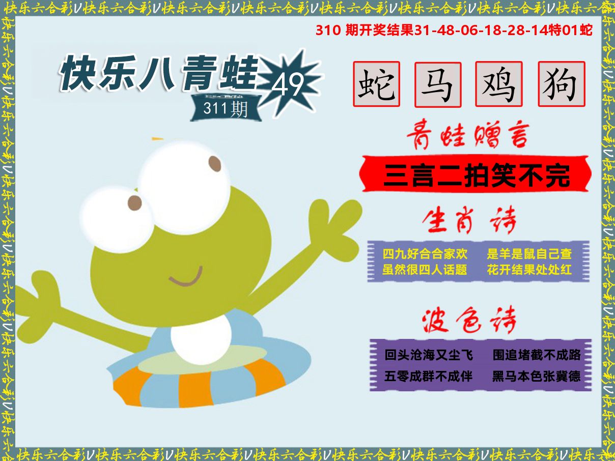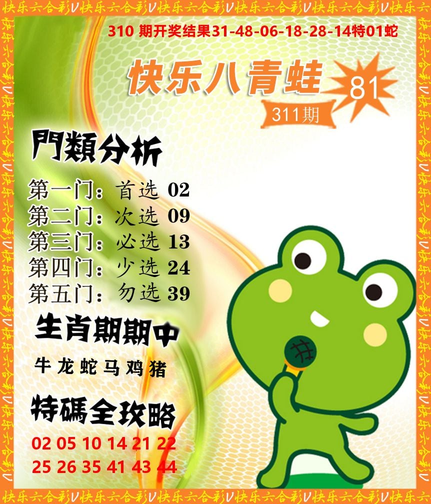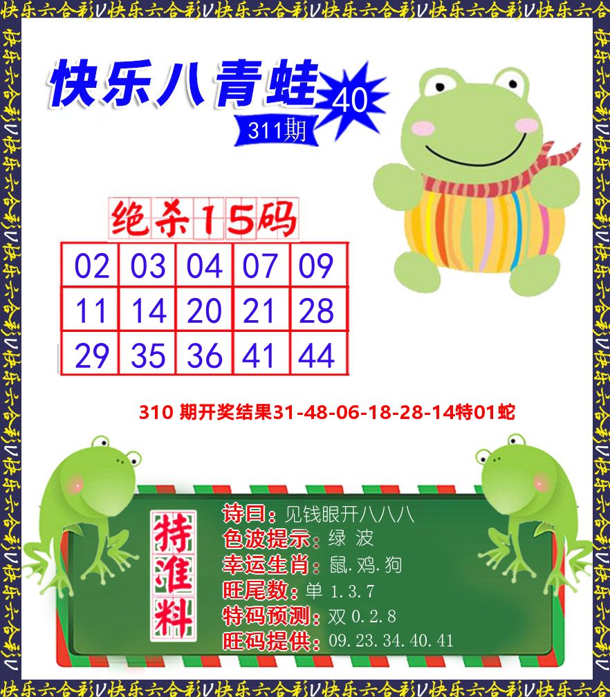 解:猪前狗后结亲家,得猪狗,看看地支是哪家,是地肖蛇羊鸡狗鼠虎,开鸡45