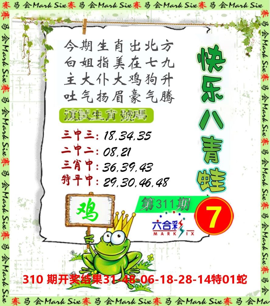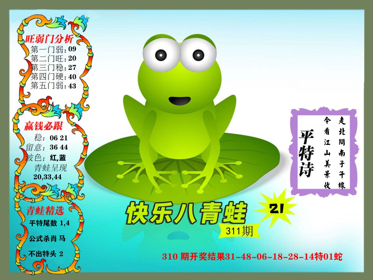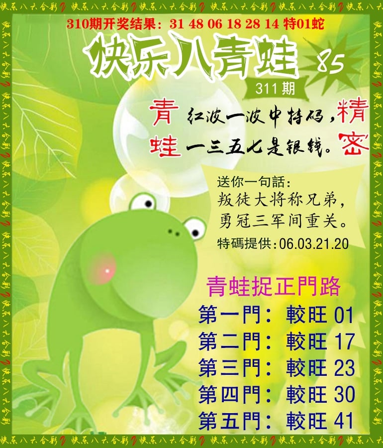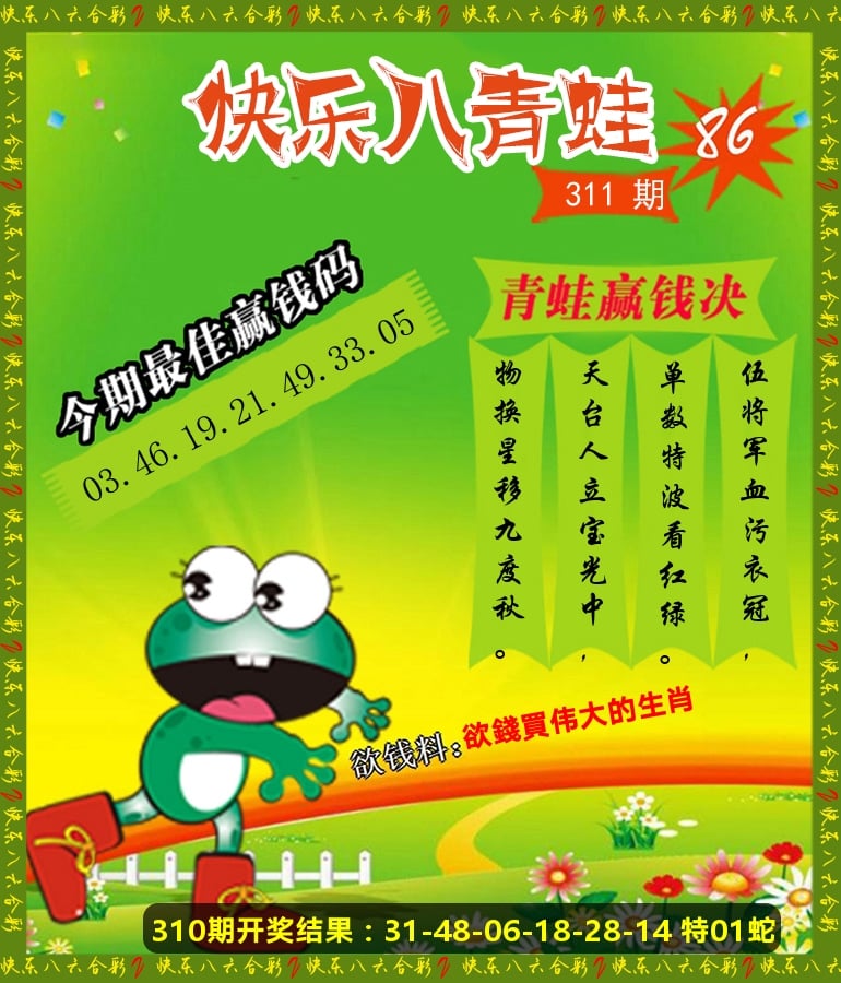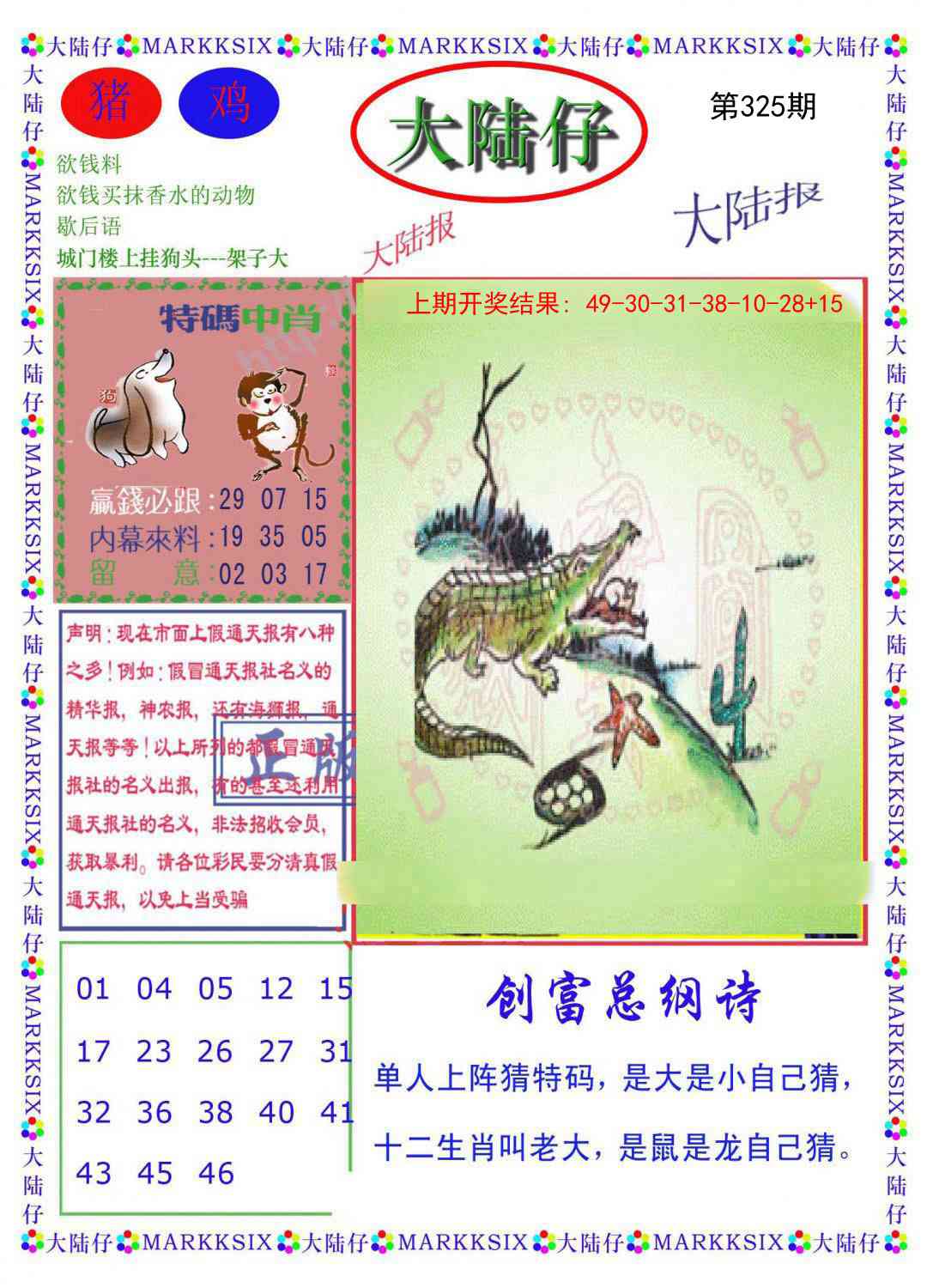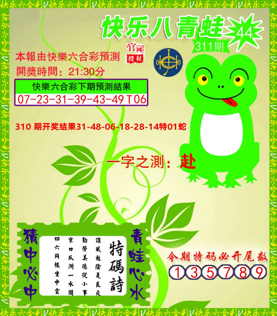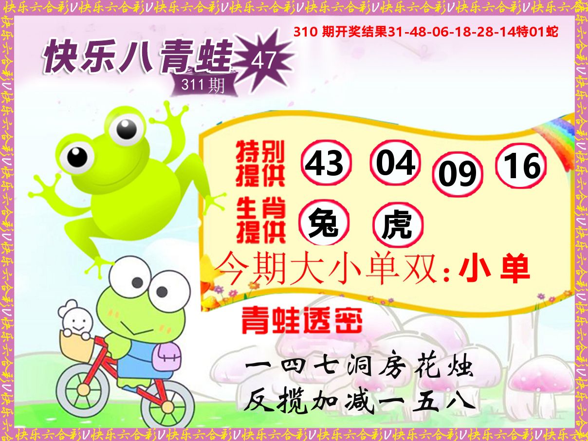 解:猪前狗后结亲家,得猪狗,看看地支是哪家,是地肖蛇羊鸡狗鼠虎,开鸡45