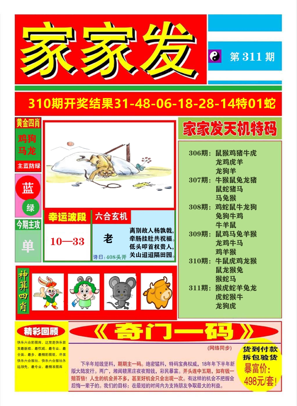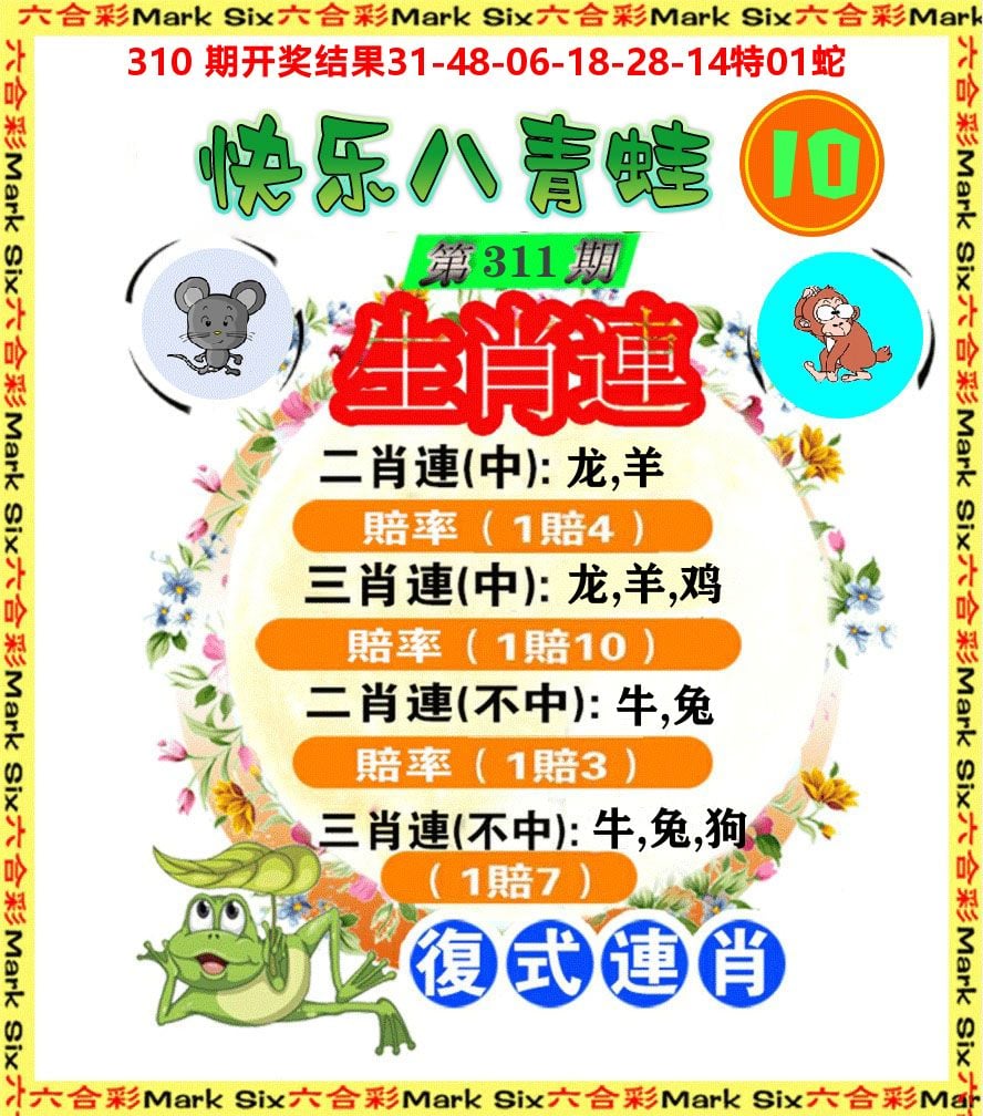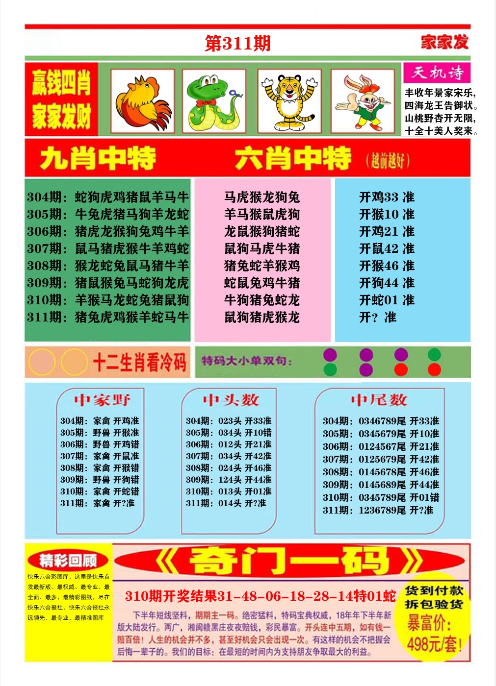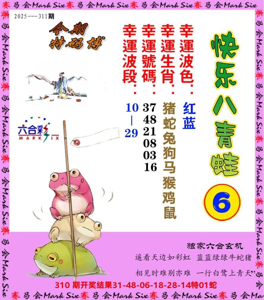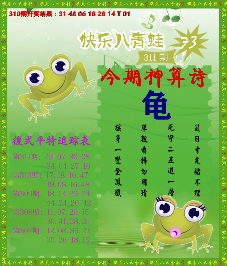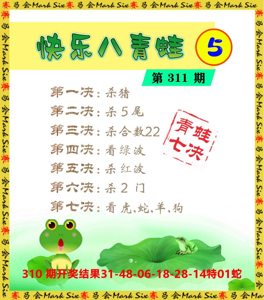 解:猪前狗后结亲家,得猪狗,看看地支是哪家,是地肖蛇羊鸡狗鼠虎,开鸡45