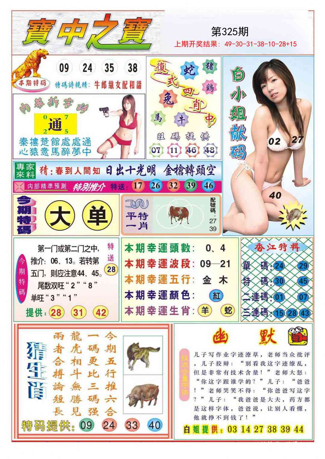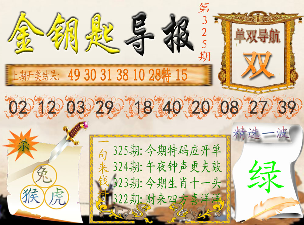解:金风解五行金的生肖:猴鸡,名扬天下,可解天肖:牛兔龙马猴猪,开兔03