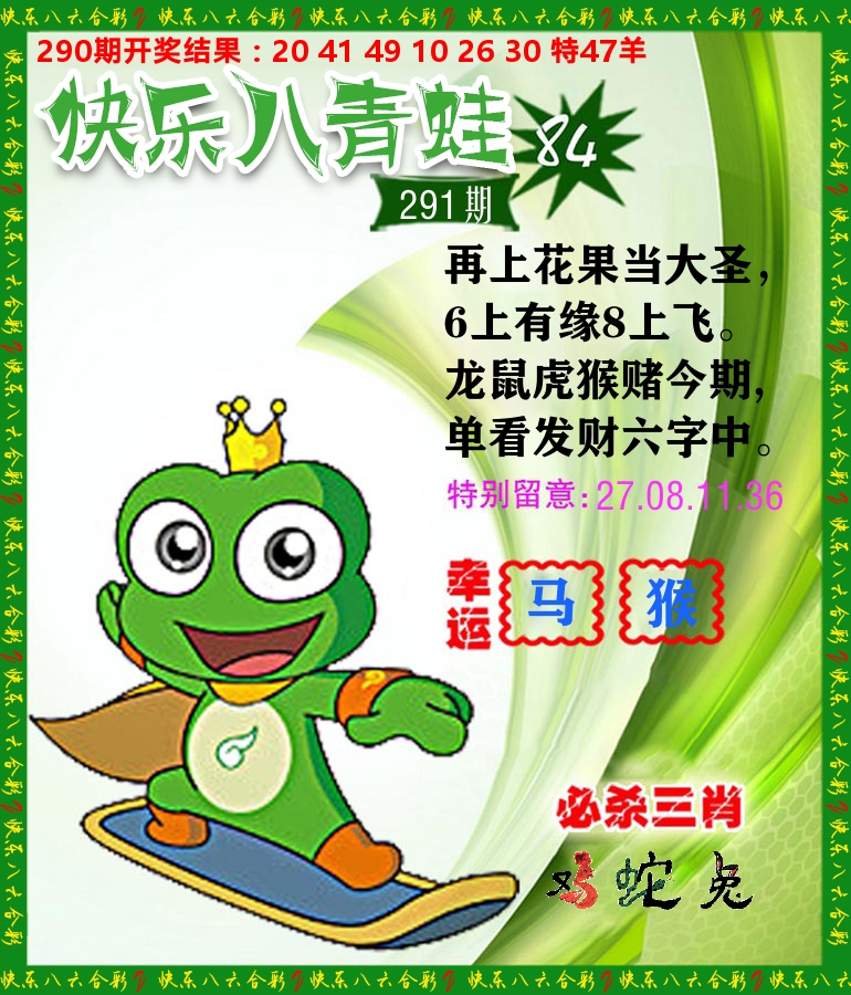 解:金风解五行金的生肖:猴鸡,名扬天下,可解天肖:牛兔龙马猴猪,开猪07