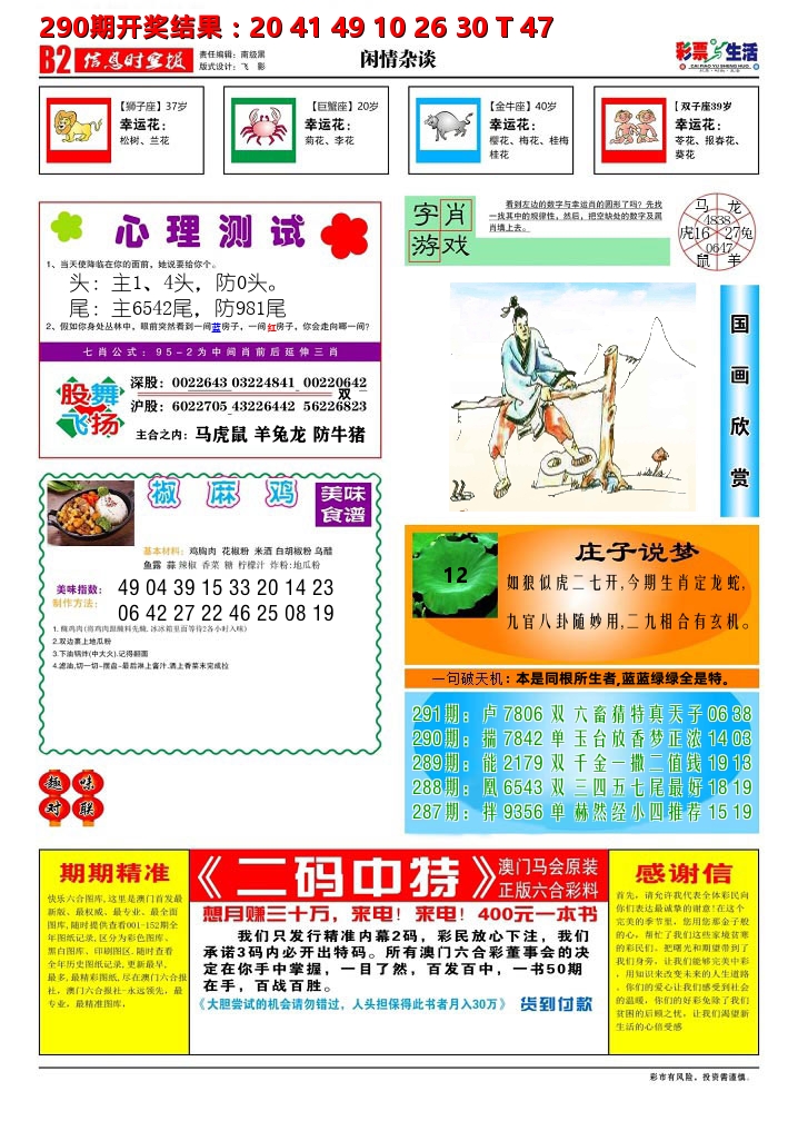 098期赌王玄机:行下春风望夏雨,燕子双飞蝶儿舞