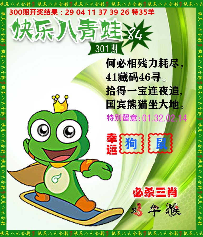 解:猪前狗后结亲家,得猪狗,看看地支是哪家,是地肖蛇羊鸡狗鼠虎,开狗32